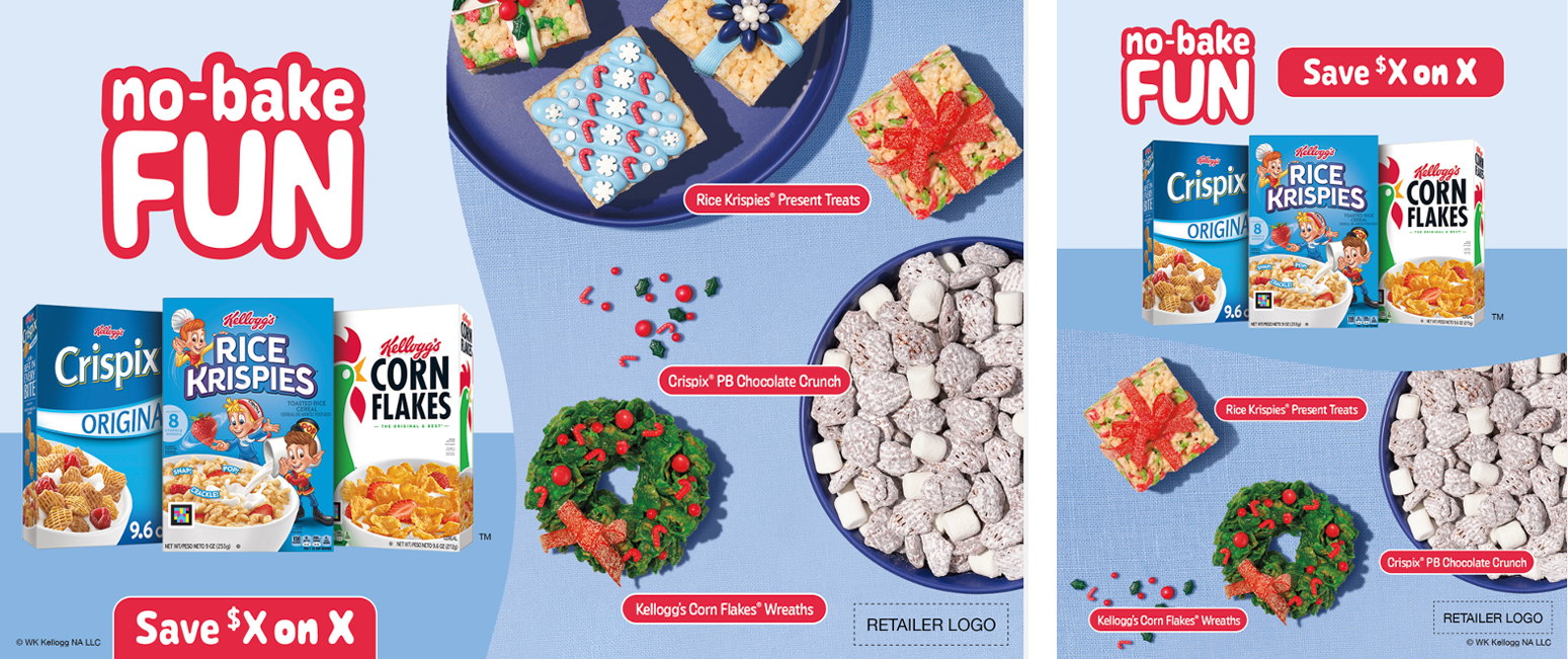In 2023, Kellogg’s Cereal came to us asking for a retail toolkit for 20+ nationwide retailers to promote cereal treat-making during various holiday seasons.